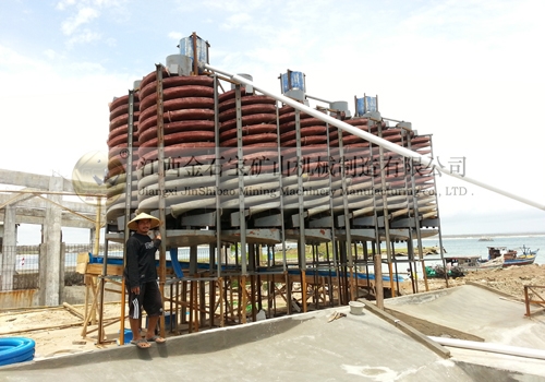 螺旋溜槽是常见的重选设备之一,适用于分选粒度0.8—0.05毫米(特殊情况下可以分选小于3毫米)物料的煤、铁矿、钛铁矿、铬铁矿、硫铁矿、钨矿、锡矿、钽铌矿,砂金矿、锆英石、金红石、独居石、磷乙矿以及具有比重差异的其他有色金属、稀有金属和非金属矿物。