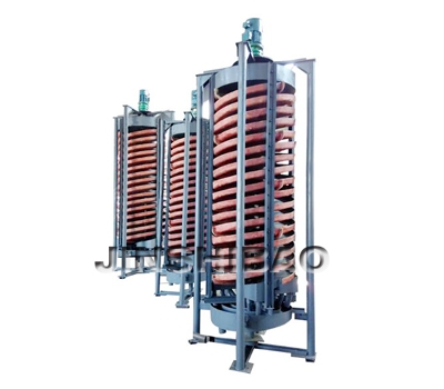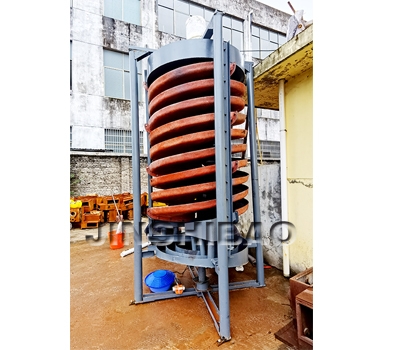 新型螺旋溜槽具有新型技术改进型带动力型,加配旋转的离心力自己振动电机的振动力,转速可调,振幅可调选矿稳定,分矿
