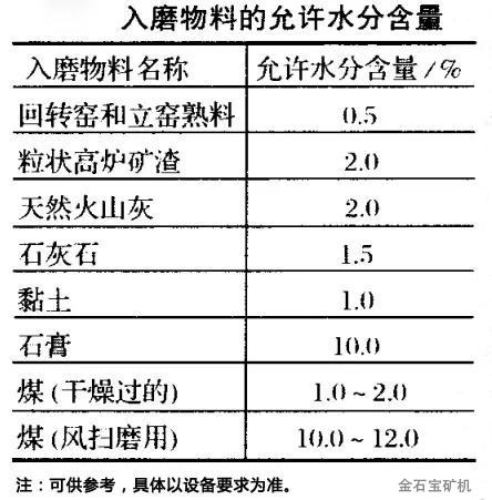 当物料含水量大时,研磨体和衬板会被黏附,形成“缓冲垫”,同时会堵塞篦板,引起“饱磨”。但入磨水分并不是越低越好,而应保持在一定范围内。