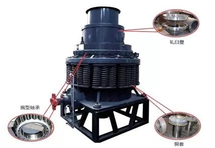 1)调整环部件包含料斗、螺纹圈和定锥衬板等部件,它的安装质量好坏也能影响设备运行的稳定性、破碎效果和定锥衬板的使用寿命。