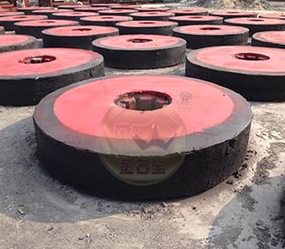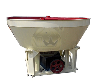 该设备主要由动力装置、机架、水盆、碾轮、碾盘等部件组成,采用轮动式磨矿工作方式:首先电动机将动力传动至减速机,在减速机带动下,通过大立轴将力矩传递给上方的横轴,然后经安装在横轴两端的拉杆传递至碾轮,使碾轮产生驱动力,沿横轴水平方向做逆时针旋转运动;工作时的碾轮既能围绕湿碾机大立轴公转,又能围绕碾轮中心轴进行自转,碾盘则固定不动。添加的矿石物料,在碾磨机内受到来自,碾轮自身重量带来的挤压力,碾轮公转自转时与碾盘产生的巨大摩擦力,在受到反复的挤压、揉搓、研磨后,被彻底粉碎。